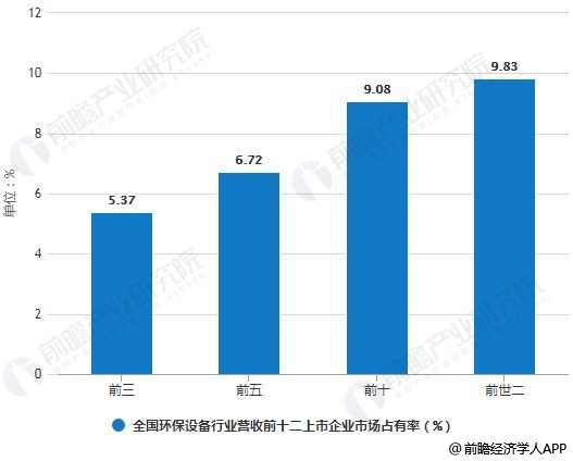 2017年全國環(huán)保設(shè)備行業(yè)營收前十二上市企業(yè)市場占有率統(tǒng)計(jì)情況